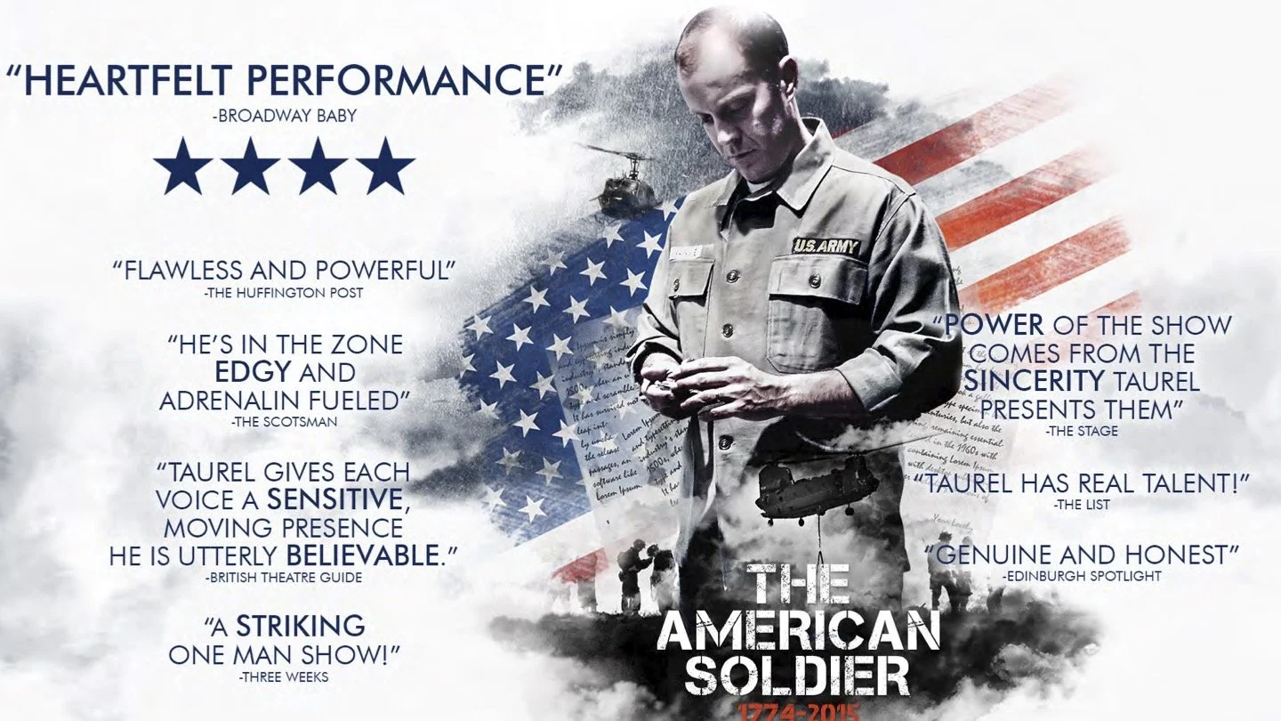 Drawn from real letters, diaries, and firsthand accounts spanning from the American Revolution to modern-day conflicts, The American Soldier is a gripping solo performance that brings to life the voices of those who have served. Through a seamless blend of storytelling and character transformation, Taurel embodies multiple soldiers across generations—capturing their bravery, vulnerability, humor, and heartbreak with striking immediacy.